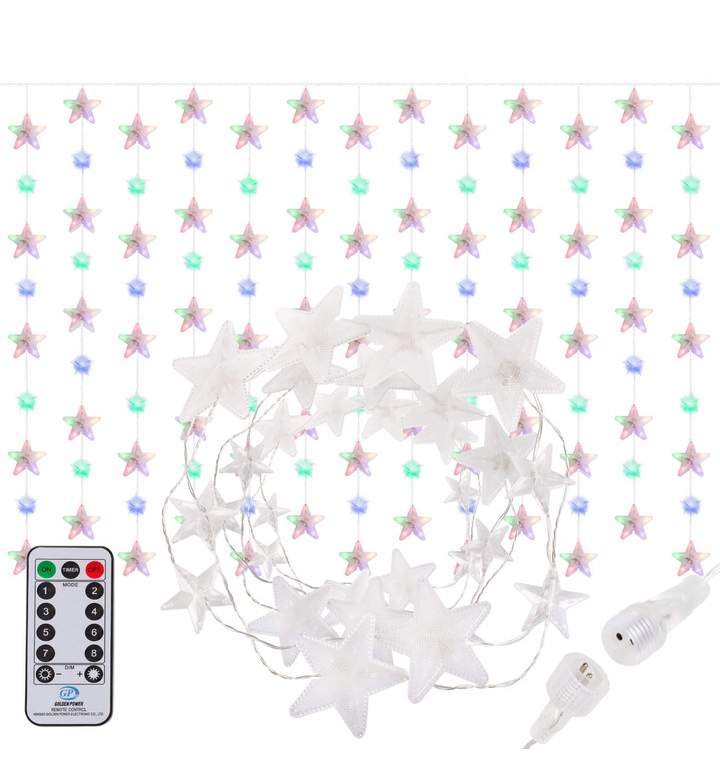 Instalatie luminoasa model stelute cu 136 LED-uri, pentru Craciun, tip Perdea, cu telecomanda, 2m, multicolor